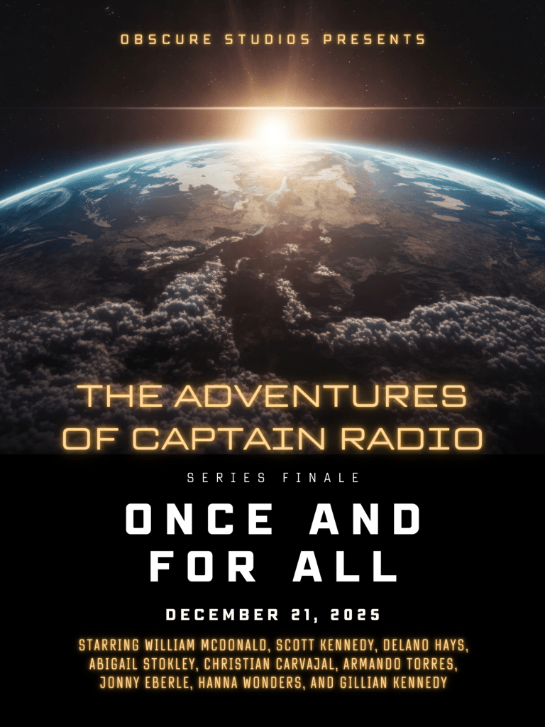 It’s finally here, the epic conclusion of The Adventures of Captain Radio. In the final episode, Once and For All, our heroes face off against their most powerful enemy to retake the ship, save the planet Alpha Centauri from being crushed by the graviton fold, and rescue Ace from the grip of Doctor Orban’s evil scheme. But it comes at a terrible cost.