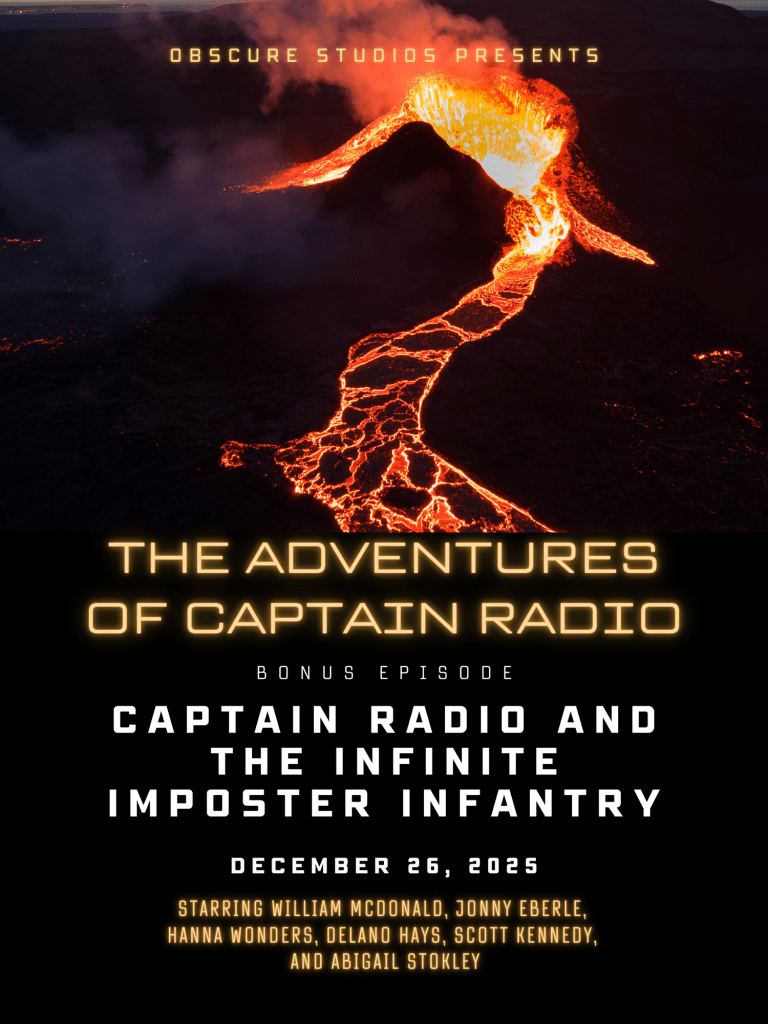 The Adventures of Captain Radio has concluded its run…or has it? This morning, our bonus-level backers on Ko-Fi woke up to a post-Christmas surprise—a lost adventure pitting Captain Radio against the evil genius Doctor Orban. Set before the events of Season 1, Captain Radio and the Infinite Imposter Infantry is an excerpt from the finale of a seemingly lost adventure with hints about the life one of our main characters lived before their time aboard the Phaeton. The episode also offers a brief hint about our new audio drama coming in 2026.
